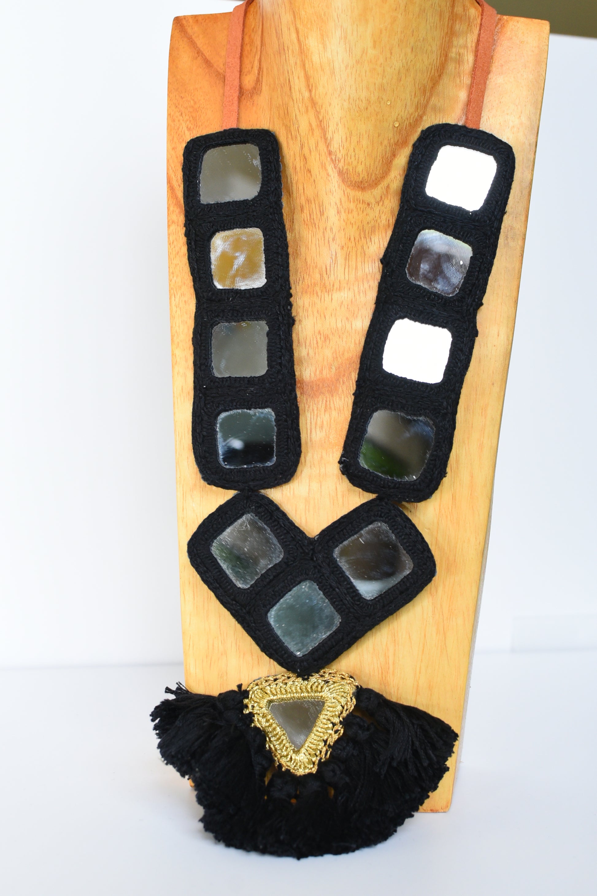 Black square mirror necklace