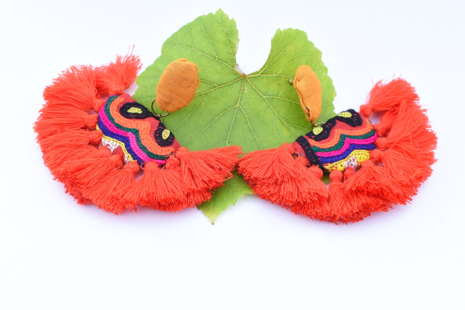 The illustrious fabric handicrafte and textile tradition of the tribal community of Kutch District in Gujarat, India, crafted with orange fabric, is renowned. This vibrant piece is hand-crafted with attention to detail and decades of expertise, giving it an impressive and timeless look.