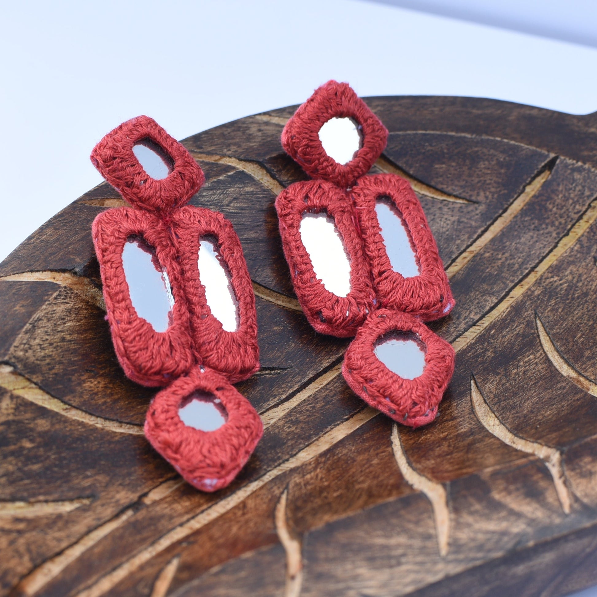 These earrings boast rust-hued mirrored surfaces for a touch of elegance and poise. Their lightweight structure offers comfort and convenience, allowing for easy and effortless styling.