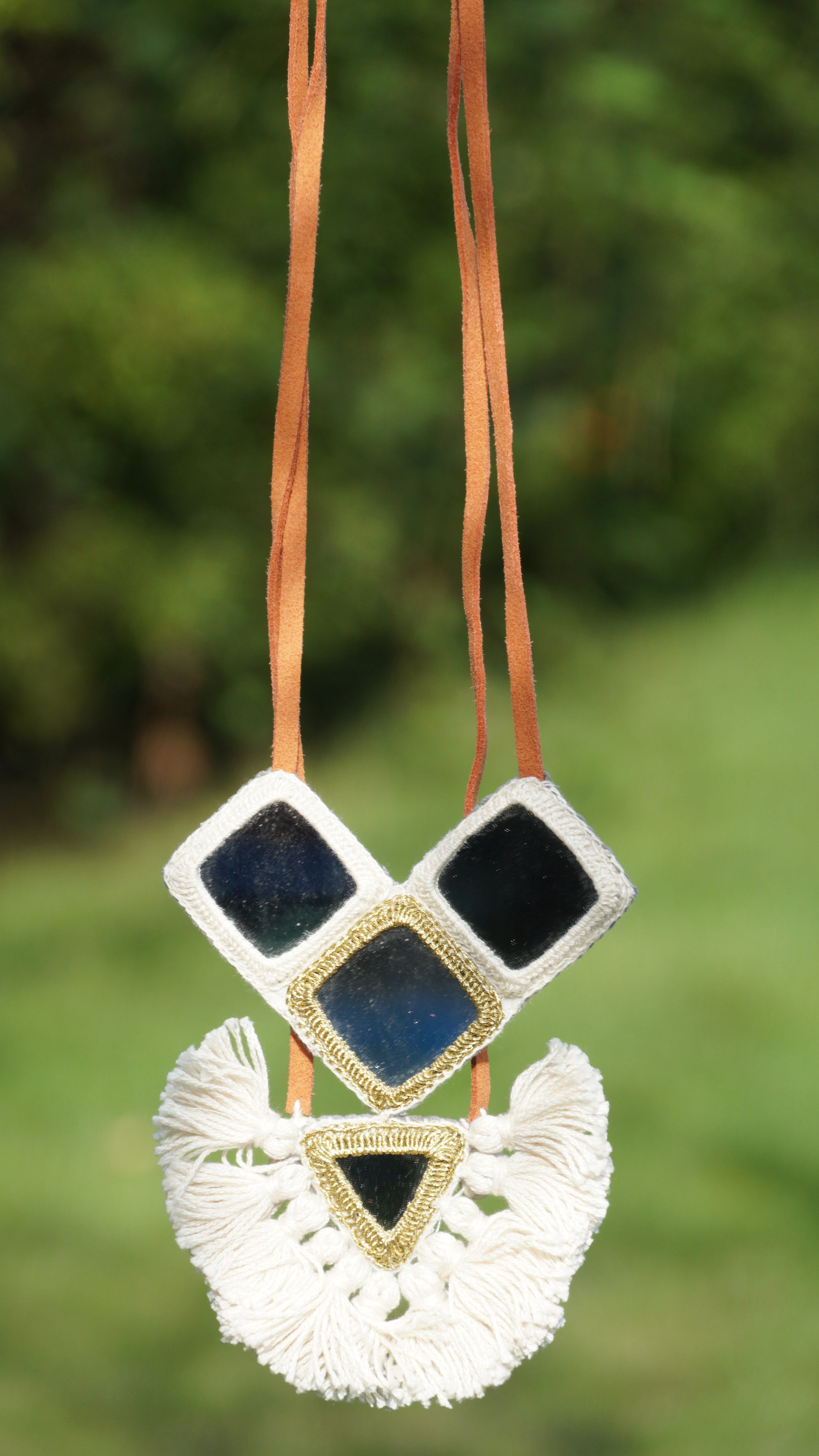 A sophisticated necklace that enhances the look of any attire. This lightweight necklace features a soft and velvety cord, making it comfortable to wear. The addition of tassels brings extra charm to the necklace. An ideal gift suitable for individuals of any age group. Boasting a unique design, this mirror necklace is sure to be a conversation starter. Its versatile style makes it perfect for any occasion or outfit. Its stylish and lightweight design adds a touch of class and elegance to all looks.